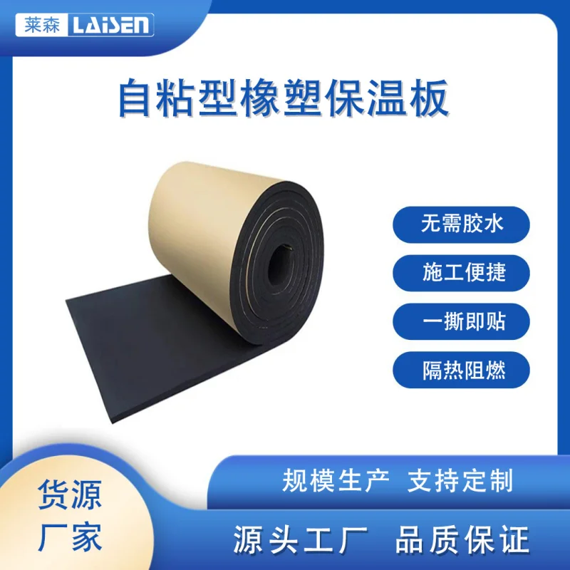4、抗老化性能好:自粘型橡塑保溫板具有較好的耐候性和耐老化性能,能夠在不同環(huán)境條件下長(zhǎng)期保持穩(wěn)定的保溫效果。